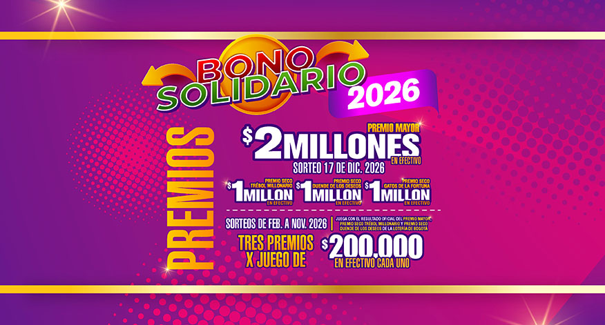 Todos los sorteos juegan con las TRES ÚLTIMAS CIFRAS del Premio Mayor de la Lotería de Bogotá los últimos jueves de cada mes durante el año 2026. Aprobado por la Asamblea General Ordinaria del 07 de febrero de 2026.